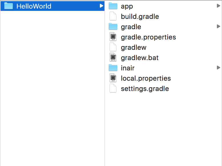 An InAiR project contains all the files that comprise the source code for your InAiR app. The InAiR SDK tools make it easy to start a new InAiR project with a set of default project directories and files.