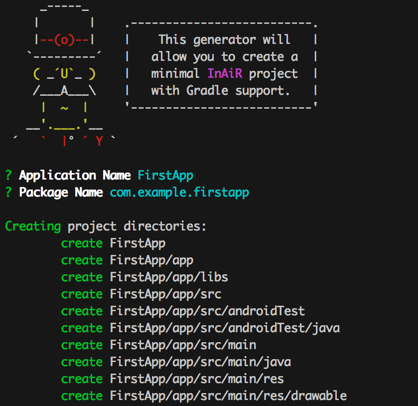Enter Application Name & Package Name and yo will generate a project for you.